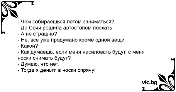 - Как думаешь, если меня насиловать будут, с меня носки снимать будут?