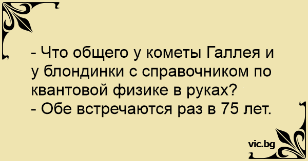 - Что общего у кометы Галлея и у блондинки с справочником по квантовой физике в руках?