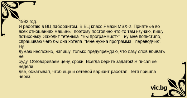 Я работаю в ВЦ лаборантом. В ВЦ класс Ямахи MSX-2. Приятные во