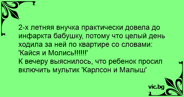 К вечеру выяснилось, что ребенок просил включить мультик 'Карлсон и Малыш'