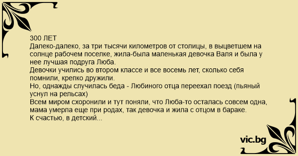 300 ЛЕТ Далеко-далеко, за три тысячи километров от столицы, в выцветшем на солнце рабочем поселке, жила-была маленькая девочка Валя и была у нее лучшая подруга Люба.