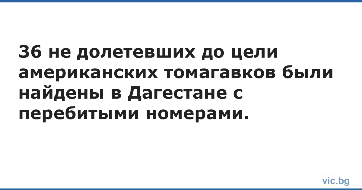 36 не долетевших до цели американских томагавков были найдены в Дагестане с перебитыми номерами.<br />