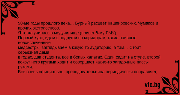 90-ые годы прошлого века… Бурный расцвет Кашпировских, Чумаков и прочих экстрасенсов.