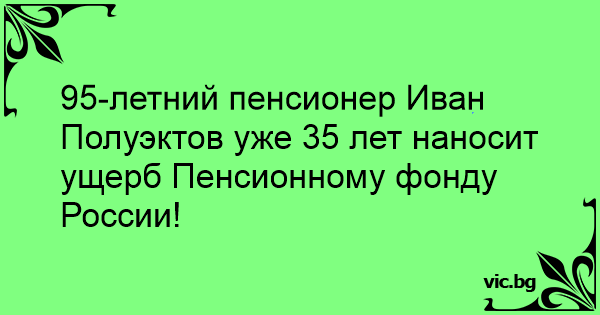95-летний пенсионер Иван Полуэктов уже 35 лет наносит ущерб Пенсионному фонду России!