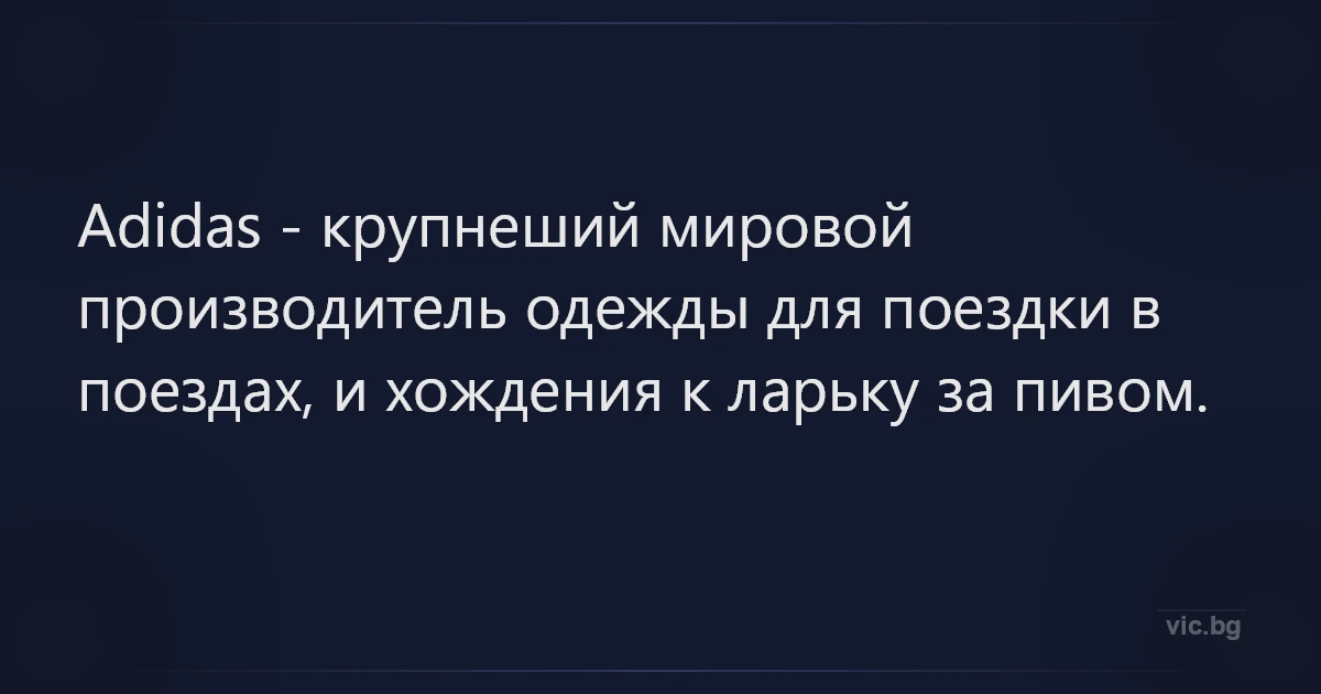 Adidas - крупнеший мировой производитель одежды для поездки в поездах, и хождения к ларьку за пивом.