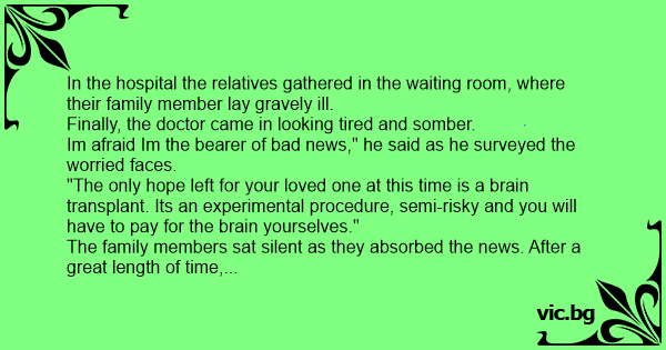 "The only hope left for your loved one at this time is a brain transplant. Its an experimental procedure, semi-risky and you will have to pay for the brain yourselves."