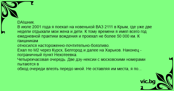 В июле 2001 года я поехал на новенькой ВАЗ 2111 в Крым, где уже две