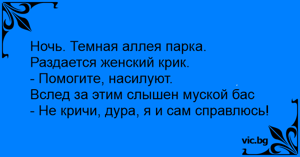 помогите! насилуют! - не кричи, дура! я и сам справлюсь.