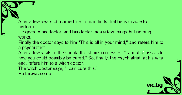 After a few years of married life, a man finds that he is unable to perform.