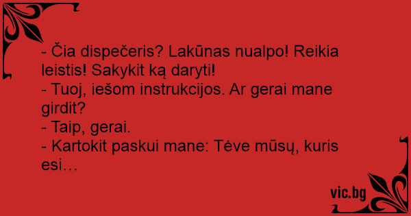 - Tuoj, iešom instrukcijos. Ar gerai mane girdit?
