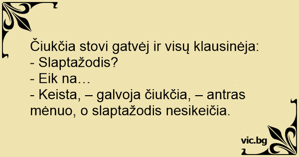 - Keista, – galvoja čiukčia, – antras mėnuo, o slaptažodis nesikeičia.