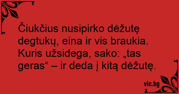 Čiukčius nusipirko dėžutę degtukų, eina ir vis braukia. Kuris užsidega, sako: „tas geras“ – ir deda į kitą dėžutę.