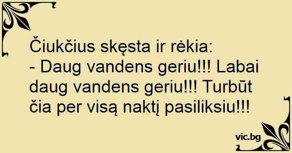 - Daug vandens geriu!!! Labai daug vandens geriu!!! Turbūt čia per visą naktį pasiliksiu!!!