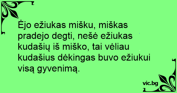 Ėjo ežiukas mišku, miškas pradejo degti, nešė ežiukas kudašių iš miško, tai vėliau kudašius dėkingas buvo ežiukui visą gyvenimą.