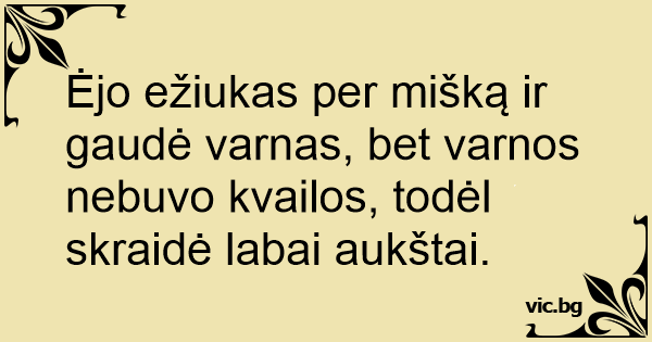 Ėjo ežiukas per mišką ir gaudė varnas, bet varnos nebuvo kvailos, todėl skraidė labai aukštai.