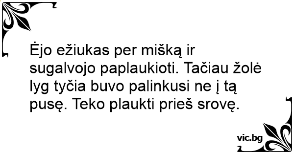 Ėjo ežiukas per mišką ir sugalvojo paplaukioti. Tačiau žolė lyg tyčia buvo palinkusi ne į tą pusę. Teko plaukti prieš srovę.