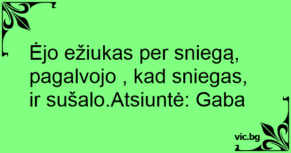 Ėjo ežiukas per sniegą, pagalvojo , kad sniegas, ir sušalo.Atsiuntė: Gaba