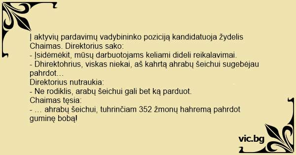 Į aktyvių pardavimų vadybininko poziciją kandidatuoja žydelis Chaimas. Direktorius sako: