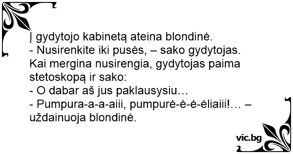 Kai mergina nusirengia, gydytojas paima stetoskopą ir sako: