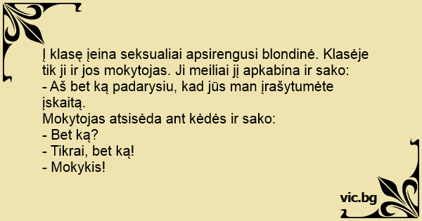 Į klasę įeina seksualiai apsirengusi blondinė. Klasėje tik ji ir jos mokytojas. Ji meiliai jį apkabina ir sako: