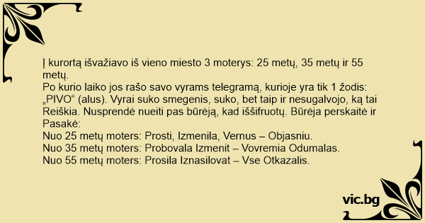 Į kurortą išvažiavo iš vieno miesto 3 moterys: 25 metų, 35 metų ir 55 metų.