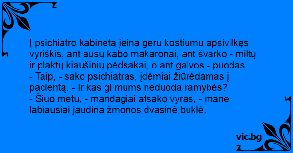 - Taip, - sako psichiatras, įdėmiai žiūrėdamas į pacientą. - Ir kas gi mums neduoda ramybės?