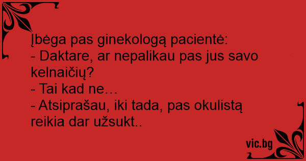 - Daktare, ar nepalikau pas jus savo kelnaičių?