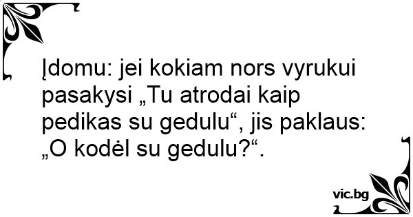 Įdomu: jei kokiam nors vyrukui pasakysi „Tu atrodai kaip pedikas su gedulu“, jis paklaus: „O kodėl su gedulu?“.