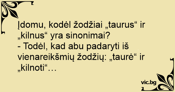 - Todėl, kad abu padaryti iš vienareikšmių žodžių: „taurė“ ir „kilnoti“…