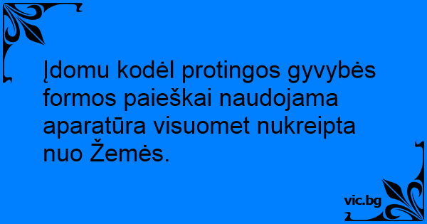 Įdomu kodėl protingos gyvybės formos paieškai naudojama aparatūra visuomet nukreipta nuo Žemės.