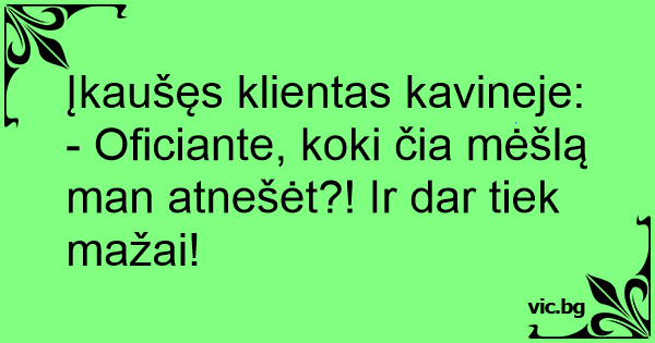 - Oficiante, koki čia mėšlą man atnešėt?! Ir dar tiek mažai!