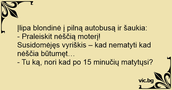 Įlipa blondinė į pilną autobusą ir šaukia: