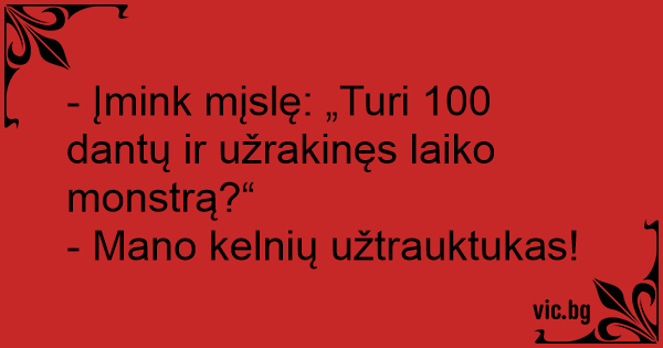 - Įmink mįslę: „Turi 100 dantų ir užrakinęs laiko monstrą?“