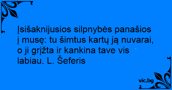 Įsišaknijusios silpnybės panašios į musę: tu šimtus kartų ją nuvarai, o ji grįžta ir kankina tave vis labiau. L. Šeferis