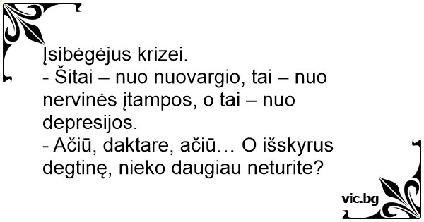 - Ačiū, daktare, ačiū… O išskyrus degtinę, nieko daugiau neturite?