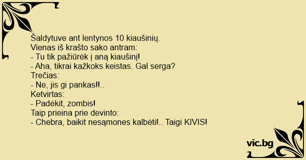 - Chebra, baikit nesąmones kalbėti!.. Taigi KIVIS!