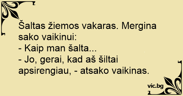 Šaltas žiemos vakaras. Mergina sako vaikinui: