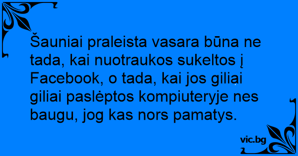 Šauniai praleista vasara būna ne tada, kai nuotraukos sukeltos į Facebook, o tada, kai jos giliai giliai paslėptos kompiuteryje nes baugu, jog kas nors pamatys.