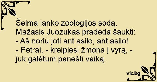 Šeima lanko zoologijos sodą. Mažasis Juozukas pradeda šaukti: