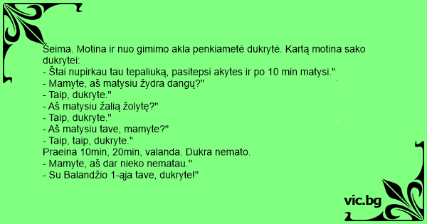 - Štai nupirkau tau tepaliuką, pasitepsi akytes ir po 10 min matysi."