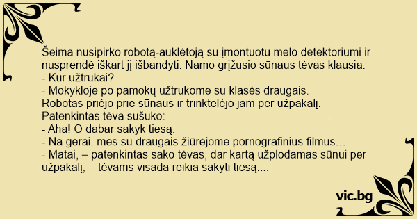 Robotas priėjo prie sūnaus ir trinktelėjo jam per užpakalį. Patenkintas tėva sušuko: