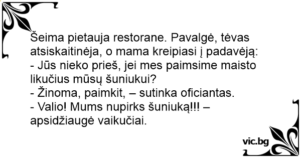 - Valio! Mums nupirks šuniuką!!! – apsidžiaugė vaikučiai.