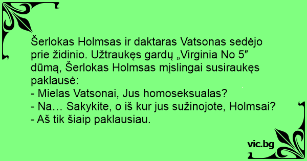 - Na… Sakykite, o iš kur jus sužinojote, Holmsai?