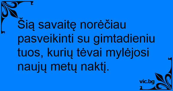 Šią savaitę norėčiau pasveikinti su gimtadieniu tuos, kurių tėvai mylėjosi naujų metų naktį.