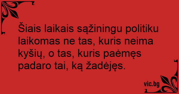 Šiais laikais sąžiningu politiku laikomas ne tas, kuris neima kyšių, o tas, kuris paėmęs padaro tai, ką žadėjęs.