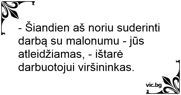 - Šiandien aš noriu suderinti darbą su malonumu - jūs atleidžiamas, - ištarė darbuotojui viršininkas.