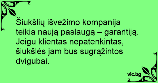 Šiukšlių išvežimo kompanija teikia naują paslaugą – garantiją. Jeigu klientas nepatenkintas, šiukšlės jam bus sugrąžintos dvigubai.