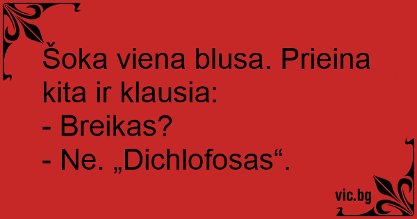 Šoka viena blusa. Prieina kita ir klausia: