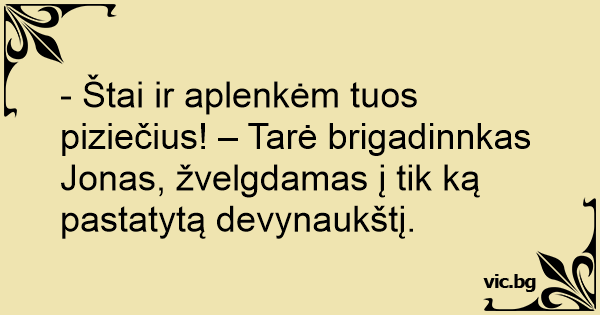- Štai ir aplenkėm tuos piziečius! – Tarė brigadinnkas Jonas, žvelgdamas į tik ką pastatytą devynaukštį.