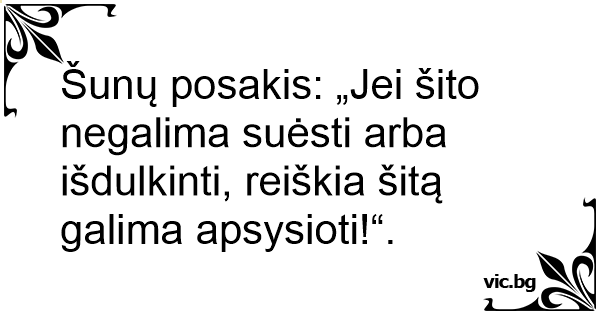 Šunų posakis: „Jei šito negalima suėsti arba išdulkinti, reiškia šitą galima apsysioti!“.